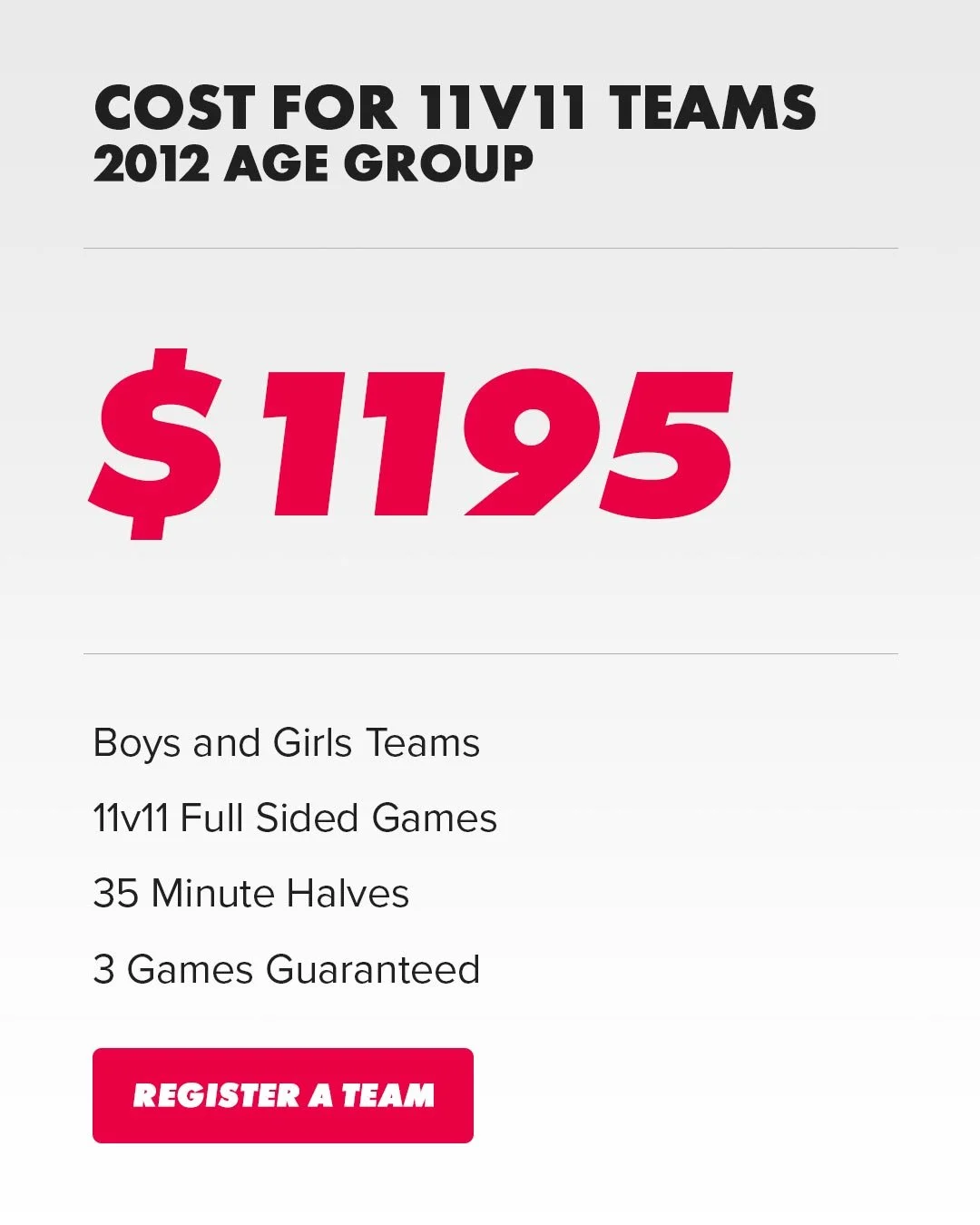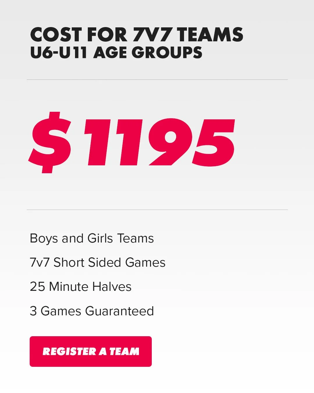 7v7 (U6-U11 / 30 min halves) : $1,195